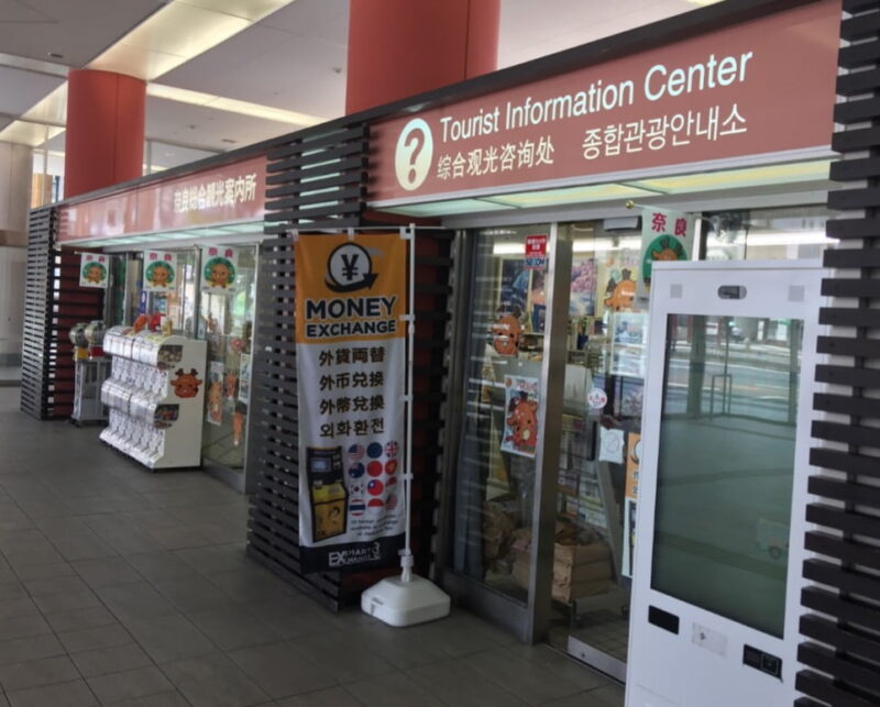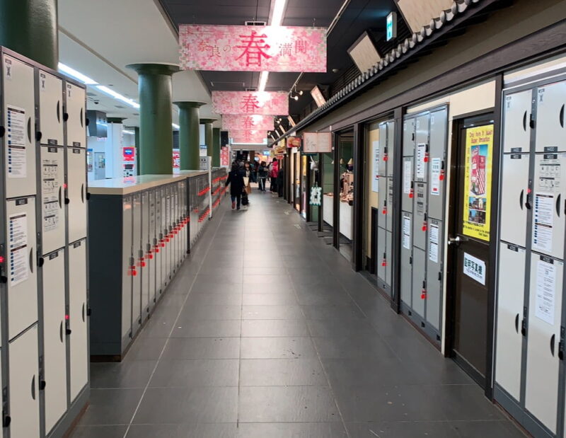 この観光案内所の外側にコインロッカーが設置されています。案内所の前には近鉄奈良駅の入り口が見えますので、東大寺や春日大社へ行かれるのであれば便利です。