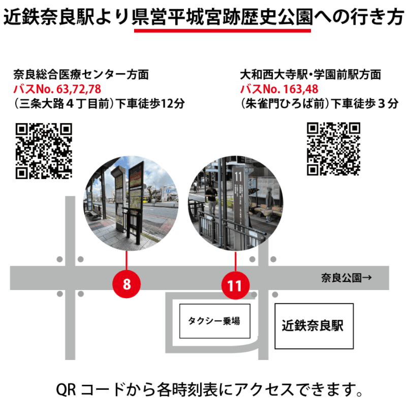 JR奈良駅の平城宮跡歴史公園行きバスの乗り場(場所地図)