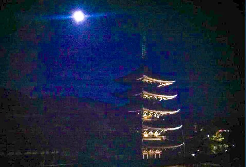 ライトアップなしの五重塔を月と撮影するのも良いですが、興福寺五重塔のライトアップも当然ながら非常に魅力的♡
