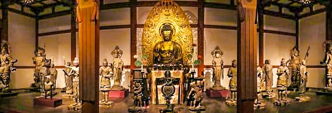 上図は2017年に、興福寺の仮講堂にて再現公開されていた、興福寺 西金堂内の仏像配置図になる。